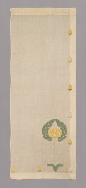 This cotton and silk fragment presents a compelling study in contrasts. The weathered left side, with its frayed edges and faded hues, sharply opposes the intact right border, featuring a vibrant blue band adorned with stylized golden floral motifs. The composition divides the material into two distinct zones. The left area, with its irregular and organic textures, contrasts with the rhythmic, geometric precision of the floral pattern on the right. These visual elements speak to broader themes of decay and preservation, challenging our understanding of value and beauty within historical artifacts. The fragment invites us to consider the artwork not as a complete object but as a signifier of time, loss, and transformation. The interplay between the ruined and the refined suggests a continuous negotiation between past and present meanings, prompting us to question fixed interpretations and embrace the dynamic nature of art.
