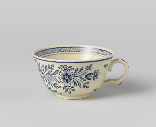 Editor: Here we have a charming cup from Le Nove, created sometime between 1765 and 1799. It’s ceramic, adorned with delicate floral sprays. The simple elegance is what strikes me most. What can you tell us about its context? Curator: Well, this piece reflects the 18th century’s fascination with both classicism and the natural world. The restrained decoration and clean lines echo Neoclassical ideals, emphasizing order and reason, traits desired after periods of unrest.. Consider the socio-political landscape: The Enlightenment was in full swing, challenging aristocratic excess with middle class virtues. Where do you think this cup might have fit into this cultural moment? Editor: I imagine it would be owned and used by an upper-middle-class family or member of the merchant class who favored functionality. But wasn't porcelain still considered pretty precious? Curator: Yes, precisely. Porcelain production was highly competitive. Royal patronage and the establishment of manufactories like Le Nove aimed to compete with Asian imports and assert national prestige. Each piece, even something as seemingly simple as this cup, carried a weight of national identity and economic ambition. How do museums today shape our perception of these objects? Editor: That's a fascinating point! Museums, in displaying and contextualizing these objects, really give them a cultural relevance beyond mere utility. By displaying something as a "work of art," doesn't that almost change what it actually is, or its function? Curator: Absolutely. Placing everyday objects in a museum elevates them, often disconnecting them from their original, intended function, imbuing them with new symbolic meaning and making them serve as representatives of an era. Considering this reframing is a powerful aspect of art history, wouldn't you agree? Editor: Definitely. I've gained a new perspective on this piece and the narratives it can carry. Thanks for the insightful experience! Curator: My pleasure. These pieces are a conduit of social values!