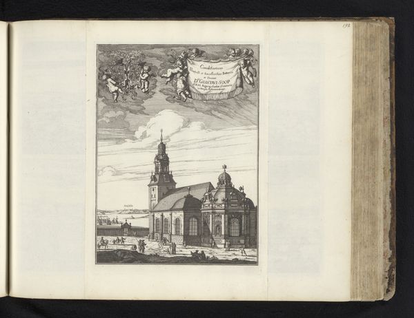 Curator: Here we have a print entitled "Gezicht op de Zuiderkerk te Amsterdam," or "View of the Zuiderkerk in Amsterdam." This cityscape, rendered as an engraving, dates back to 1726 and is held in the Rijksmuseum collection. Editor: Immediately, I'm struck by the almost miniature world captured here. It’s like looking into a snow globe of 18th-century Amsterdam, with this imposing church anchoring the scene. There is something about the muted tones of the engraving that brings a very peaceful, almost contemplative, feeling to the viewing experience. Curator: The Zuiderkerk itself is fascinating, one of the earliest churches built specifically for Protestant worship in Amsterdam. Its construction in the early 17th century reflected the shifting religious landscape of the Dutch Republic. Its presence as the subject in an engraving such as this speaks to the central role of the church within Amsterdam's physical and cultural identity during this period. Editor: Absolutely, it's the tallest, most striking element of the artwork—its spire like a finger pointing toward the heavens. However, I find the incidental details even more compelling – children at play, elegant carriages and people congregating around them. These create the feeling of witnessing a dynamic, thriving hub. There’s an underlying feeling of a structured and organized chaos, if that makes sense. Curator: Indeed, cityscape prints like this served several purposes. They provided visual records of the urban environment, documented architectural achievements, and functioned as symbols of civic pride, highlighting Amsterdam’s status as a prominent European center for commerce and culture. Also, remember prints like this also disseminated information about the layout and architecture of the city. Editor: Right! It is interesting that art could serve, and likely was meant to serve, an advertising function in its time. I do notice that I return continuously to the people, their movement within this confined space. It reminds me that this art is more about humanity and energy rather than just structures and buildings. Curator: Precisely. Considering this piece's place within Amsterdam's evolving social and political landscape offers a more nuanced view of its value. Its detailed depiction provides not only architectural and aesthetic value but reveals some historical perspectives. Editor: Gazing at it like this does let you feel a sense of the historical moment. Now, excuse me, but I'm tempted to look for a pub nearby. I want to contemplate and imagine a different reality.