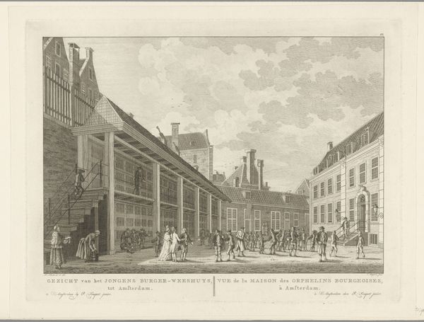 Cornelis de Kruyff made this print of the Oranje-Nassau Barracks in Amsterdam, using etching and possibly other techniques. It is a vision of institutional order, rendered in careful detail. The print, while seemingly a straightforward depiction, is a product of its time. Made in the early 19th century, it reflects the values of the Dutch Kingdom, which had just been established after the Napoleonic era. The imposing architecture of the barracks speaks to the state's power. The presence of citizens strolling in the foreground suggests an acceptance of, or perhaps an imposed harmony between, the military and civilian life. Was the artist commissioned to create this image, and if so, what was its intended use? Was it meant to project strength, stability, or a sense of national pride? These are the questions that a social historian might ask. By consulting period documents we can better understand the relationship between the state, its military, and the public perception thereof. The meaning of art is always bound to its social and institutional context.