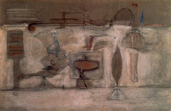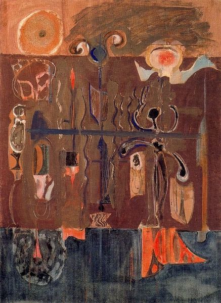 Mark Rothko made "Rites of Lilith" with oil paint, and right away you can see that he's kind of wrestling with these shapes, not quite letting them settle into anything familiar. It's like he's thinking out loud with the brush, a real process nerd! Up close, the paint's got this cool, thin, almost watery vibe in places, then thicker here and there, creating a real sense of depth, like looking into fog. The colors are muted, but they vibrate against each other. Notice that dark line snaking across the middle? It’s like a horizon, but also feels like a challenge. It makes me think of Joan Miró, another artist who was obsessed with the subconscious. For me, this painting is about Rothko searching for something beyond the surface, playing with ideas and letting us watch him do it.
