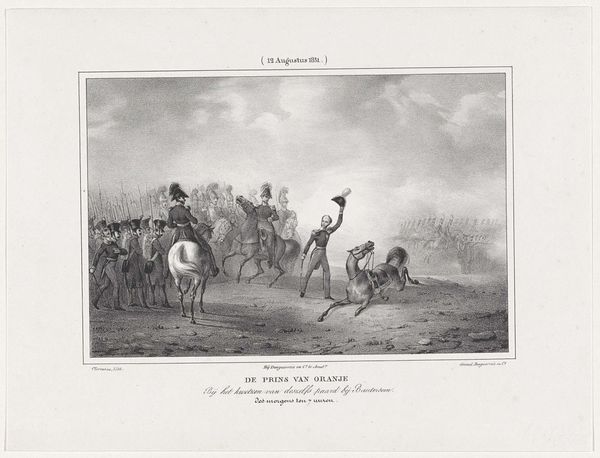 Carel Christiaan Antony Last created this work, "Karavaan soldaten te paard," using graphite, likely in the mid-19th century. The immediate visual impression is one of muted activity, a quiet procession rendered in subtle gradations of grey. The composition unfolds laterally, guiding the eye from left to right across a landscape filled with soldiers on horseback and foot. The artist employs line and tonal variation to create depth and suggest movement. The figures, though small, are meticulously detailed, giving a sense of individual presence within the larger group. The structural arrangement of the caravan, receding into the distance, indicates not only spatial depth but also a sense of continuous journey or passage. Last skillfully uses light and shadow to model the forms, creating a play of contrasts that articulates the textures of the uniforms, horses, and terrain. This formal quality underscores the work's ability to evoke a specific atmosphere and mood, drawing the viewer into a narrative that is both historical and timeless.