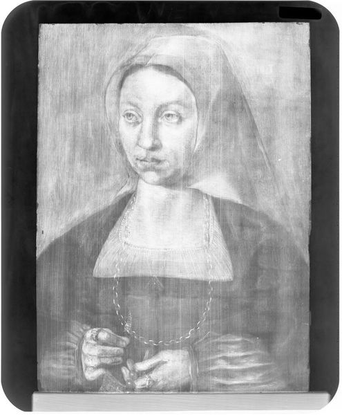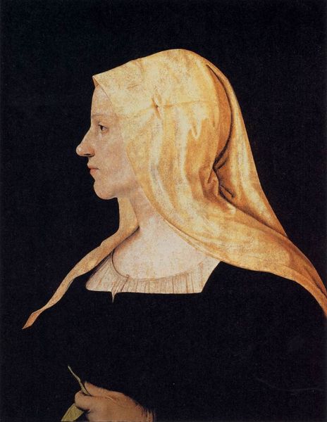 Editor: This is Leonardo da Vinci's "Isabella d'Este," created around 1500, using charcoal, and perhaps oil paint. It's a profile portrait, and I'm really struck by the delicate lines and how they give a sense of both strength and grace. What do you see in this piece, looking at it formally? Curator: Indeed. Consider the line Da Vinci employs. Note the delicacy but also the unwavering nature in defining the contours of Isabella's face and neck. It's a line that captures not just a likeness, but a character, wouldn't you agree? It’s confident. Editor: Absolutely. The line really defines her jawline and the set of her mouth. Also, I'm curious about how Da Vinci uses the shading. It seems strategic rather than purely representational. Curator: Precisely. The subtle gradations of tone, achieved through the layering of charcoal, create volume and depth, emphasizing certain features while allowing others to recede. Think about the directionality of the light – how does it sculpt her face, drawing our eye to key areas? Where is it concentrated, and what effect does that produce? Editor: It brings forward her face. It directs my eye along a diagonal from her forehead to the soft fabric of her gown and, even more strikingly, to the subtle way the shading accentuates the gentle slope of her shoulders. Curator: A careful distribution that amplifies the reading of the human form and the fall of light, thereby intensifying our perception of her humanity, and emphasizing her role as a noblewoman in her placement and costuming. So in its visual language, this is indeed a strategic positioning through form. Editor: That's insightful. Looking at it from a purely visual perspective reveals so much about the intended impression. It has certainly changed my perspective! Curator: Mine too.