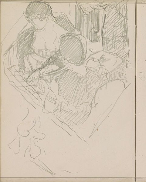 Reijer Stolk made this sketch of an older woman with a saucer, probably on paper with a pencil. It is a tentative thing, and that's what I like about it. The marks feel like the artist is thinking aloud, searching for the form, and it is as if we are party to a conversation between the eye, the hand, and the paper. Notice how the hat is constructed of many small marks, like tiny stitches or dabs of paint. Each one is a decision, a negotiation between what is seen and what is felt. The additional faint rendering of the woman's head adds to the feeling of this being an exploratory process. It makes me think of other artists who embrace the unfinished, like Giacometti, whose sculptures often seem to be emerging from a cloud of material. Or maybe even Cy Twombly, in the apparent scribbles that capture something essential about form and space. Ultimately, this drawing is less about a fixed image and more about the ongoing act of looking, thinking, and making.