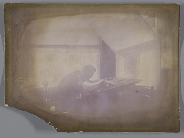 Curator: This daguerreotype, "Portrait of a Child," dates from around 1850 and its artist is unfortunately anonymous. What strikes you about this image? Editor: There's an unexpected intimacy to it, despite the formal composition. The child appears almost in a dreamlike state, with the hat covering the face, very interesting materials. The light is soft but very precise, giving an ethereal quality to the whole image. Curator: Absolutely. The process of creating daguerreotypes involved meticulously polishing a silver-plated copper sheet, treating it with chemicals to make it light-sensitive, and then exposing it in a camera. Consider the labour involved in producing this single image and how it democratized representation across classes, capturing likenesses with unprecedented realism at the time. It also, obviously, codified and solidified expectations for portraiture, not merely likenesses. Editor: Yes, and the materials themselves—the silver plate, the chemicals, the framing—speak to a growing industry built around capturing and commodifying images. Beyond the person depicted, it is capturing of processes of labor itself. The very posture of the child is revealing - it invites speculation. Why the hat covering the face? The relaxed, yet constructed setting speaks volumes. What's the nature of childhood being expressed here, or, rather, what type of idealization is suggested through those careful arrangements and objects? Curator: Exactly! I mean, it is revealing of the way childhood was both seen and fabricated. The backdrop, the clothing - all these elements carefully stage the subject within the context of emerging Victorian values and social expectations, as well as codes of social status and wealth through the material. This wasn't merely a depiction; it was a carefully constructed narrative about innocence and social placement. And, this all being considered, we are missing significant components of this construction by the portraitist being unnamed, anonymous, in effect. Editor: In this, the absence becomes very interesting to the discussion around the work. To imagine and recover the potential for human labor, while knowing its precise parameters remain unrecoverable is an enticing dialectic, one the work creates by itself and for us. I also believe it makes us reconsider the relationship between those concepts like authorial intention and the social impact and life a work ultimately gets to have. Curator: A worthwhile idea that resonates. This image prompts reflection on societal structures, labor, and identity across centuries, making this little "Portrait of a Child" remarkably profound and relevant. Editor: Agreed, seeing this has made me realize anew the deep entanglement of aesthetics, ideology, and our social environment.