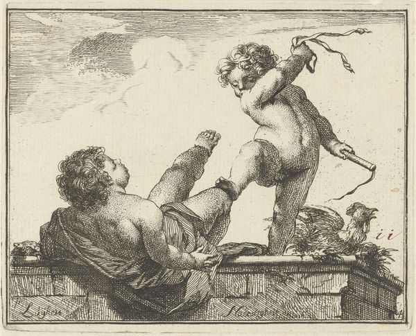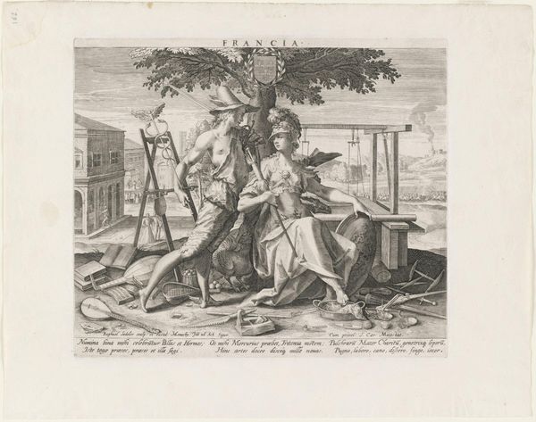 Editor: This is Romeyn de Hooghe's "Diana," an engraving from around 1688-1689, housed here at the Rijksmuseum. The fine lines create a delicate scene, almost ethereal, but there's also a clear groundedness from the detail in the landscape. What jumps out at you when you look at this piece? Curator: Immediately, I'm drawn to the printmaking process. Look closely at the burin marks; they dictate the light, shadow, and ultimately, the *value* of the work far beyond subject and symbolism. We have to consider this was a reproductive medium as much as creative; How does the mechanical process influence our interpretation of Diana, the huntress? Is this about accessible beauty or skillful rendering? Editor: That’s a great point. The act of engraving feels almost like a form of industrial production, even in the 17th century. Did de Hooghe's workshop, or his specific social class influence the work beyond his talent? Curator: Absolutely. Consider the labor involved: from preparing the copper plate to the press itself and, not to be ignored, its later mass distribution. Each impression carries its own inherent material history that also must be noted. The paper itself, likely rag paper, speaks of its own process, and thus economic background. How would that reading shift if this was made on silk, for example? Editor: It makes you think about accessibility in art, even back then. It wasn't just about the image, but who could afford and engage with it. Thanks, that's really opened my eyes! Curator: Exactly! The materials dictate so much of its story beyond pure aesthetics. Considering such materiality shifts how we address ‘Art’ then and now.