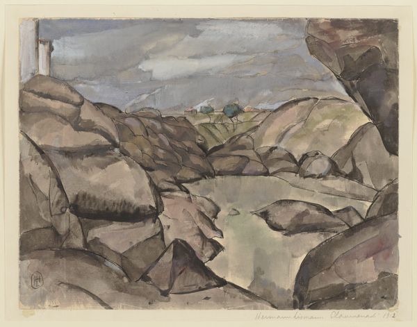 Editor: Right now, we’re looking at "Wasserfall zwischen Felsblöcken," or "Waterfall Among Boulders," made around 1834 by Carl Morgenstern. It's a delicate landscape done with pencil, graphite, and watercolor. It gives me a feeling of quiet contemplation… like a hidden place. What do you see in it? Curator: It’s as if Morgenstern invites us to witness a moment of intimate communion between water and stone. I feel the cool, damp breath of the rocks – almost like nature exhaling. Think of the Romantic era’s fascination with the sublime, with nature's overwhelming power. He wasn't just painting a pretty waterfall, was he? Instead, it feels like a search for the essence of nature itself. I'd like to know, does this conjure a narrative within you? Do the rocks whisper stories of ancient times? Editor: Yes, they do. I can almost hear the water trickling through them and maybe a faint echo. It definitely has this timeless quality. Like, these rocks have been here forever and will stay here long after us. Curator: Precisely! And did you notice how he guides your eye? The water, a silver thread, leads you deeper and deeper...almost to an unknown destination. Editor: It definitely draws me in, further into the painting, but it’s also so simple. It’s really just rocks and water, isn't it? Yet, I get lost. Curator: That's the brilliance, isn't it? To find the profound in the everyday. Next time you are outdoors, remember Morgenstern and this secret world within a stone! Editor: I definitely will. Thanks for that insight!