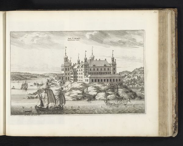 Adam Perelle created this image of Brahehus Castle using etching techniques in the late 17th century. Dominating the scene, we see the castle bearing a distinct emblem above its structure, a wreath surrounding a heraldic crest. The wreath, an ancient symbol of victory and honor, carries echoes of classical antiquity, resurfacing in various forms throughout European history. From laurel wreaths adorning the heads of Roman emperors to its use in Renaissance art symbolizing virtue and accomplishment, the wreath connects us to a long tradition of celebrating triumph and prestige. Consider how this motif has evolved, appearing in funerary art, emblems of state, and even commercial logos. Its endurance speaks to our collective need to visually represent success and legacy. The presence of the wreath here engages our subconscious desire for recognition, its cyclical reappearance testament to the enduring human quest for honor.