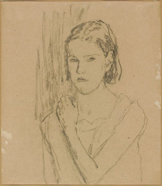 Curator: Berthe Morisot's portrait drawing of Julie Manet, completed in 1890, offers us a tender glimpse into the artist's family circle. Editor: There's such intimacy here, isn't there? A certain contemplative stillness. The limited palette and soft strokes give it a gentle, almost melancholic air. Curator: Indeed. Morisot's work often explored the subtle nuances of light and shadow to create these very effects. Observe how she utilizes a restricted tonal range, focused largely on blacks and whites with only minor chromatic shifts, to sculpt the figure. It yields to a wonderful balance between precise contour and diffuse form. Editor: The face seems almost classical, but the clothing and background are much looser, more impressionistic. Julie's dark dress absorbs and reflects the light, while the chair on which she sits is reduced to suggestive charcoal strokes. Is there any specific symbolism associated with dark dress, and do these contrast reveal more about the family connection? Curator: It seems to highlight a dichotomy between societal expectations placed upon women in the 19th century – where rigid formality in dress prevailed – versus the burgeoning freedoms enabled by the Impressionists’ loose, expressive styles, which here find connection, family warmth and gentle tenderness. Editor: And Julie’s youth surely plays a key role, encapsulating that tension. There is so much promise, captured within these few, simple marks, don’t you think? Curator: Quite so. We glimpse both fragility and latent potential; those qualities render this work deeply affecting. It's an object lesson in the art of restraint, where implication serves as its own declaration. Editor: Thank you, your comments have revealed additional levels of detail which makes it that more moving, and indeed all the more impressive, in its economy of means. Curator: It’s always a delight to bring greater contextual focus to an artwork. Hopefully, this deeper looking has aided appreciation of the symbolic nuances woven within its skillful execution.
