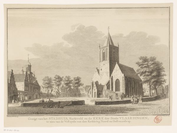 J. Drost made this drawing, titled 'Gezicht op Sint-Maarten', using pen and gray ink, and gray wash. In this landscape, the Sint-Maarten church is prominently featured, a representation reflecting the central role of the church in community life. The meticulous detailing of the church stands in contrast to the more subdued depiction of the surrounding houses and figures, creating a focal point that speaks to the church's societal influence. In the 18th century, the church was not just a place of worship, but also a center of social and political power. Landscape drawings like this one often served to reinforce these power dynamics. This work invites us to reflect on the intersection of faith, community, and authority, encouraging a consideration of the personal and communal impact of religious institutions.