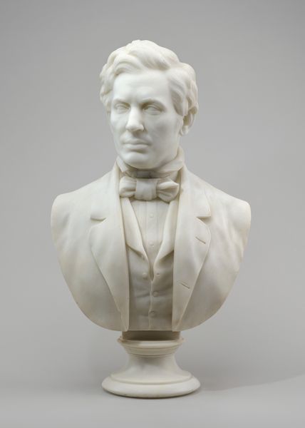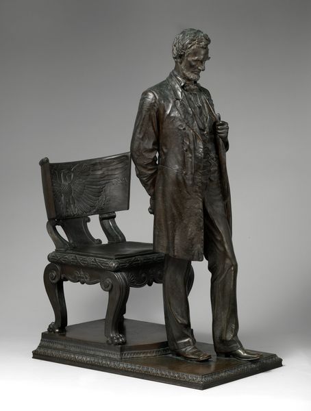 Curator: Well, hello there! Doesn't this piece just radiate...ambition? It’s a bronze sculpture, created by Bryant Baker in 1925, titled “William A. Clark.” Something about it suggests power and prosperity, don't you think? Editor: Immediately, I'm struck by a certain...unease. Clark was a complex figure, heavily involved in mining and politics, marked by accusations of corruption. Seeing him rendered in bronze like this—imposing, solid—raises questions about how we memorialize individuals whose legacies are deeply problematic. Curator: Ah, you've hit on something vital! Baker, though, I think he aimed for classic portraiture. Look at the detail in the beard, the way the light catches the lapel...there’s a timeless quality. He wasn't just immortalizing a man but a type—the self-made industrialist, perhaps. Editor: Absolutely. It’s about myth-making. The sculpted bust form, inherited from classical antiquity, almost inevitably idealizes its subject. The textures in his jacket suggest the luxury that supported Clark's endeavors. He's not just William Clark, he’s *representing* a whole social order, one built on exploited labor. Curator: Hmm, is it glorifying though, or documenting? Baker doesn’t shy away from Clark's… intense gaze. There’s a hardness there that hints at ruthlessness as much as resolve. Editor: True, the face isn't entirely flattering. Yet, the act of creating the bust monumentalizes and grants status to a system that perpetuates social disparities and marginalizes entire groups of people. So, the artwork must engage with its larger context. The green tint in the bronze suggests patina or possible aging of the bronze through chemical reactions. Curator: You always bring it back to the broader view, don’t you? Me? I simply feel a flicker of…melancholy. Bronze ages so wonderfully. What secrets will it whisper in a hundred years? Will they remember the controversies? Editor: Exactly. Let’s hope it sparks the right conversations, even in a century's time, conversations that expose structures that permit some to acquire great riches by disadvantaging others. Curator: A powerful thought to take away from a static bust. Editor: Indeed, and thank you, this was certainly an evocative point for exploration.