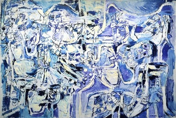 Pierre Alechinsky’s ‘Alice grandit’ is a painting which feels like a flurry of activity, a real sense of artmaking as a process. There's something so joyful about the way Alechinsky uses thin layers of paint to build up these almost dreamlike figures and shapes. You can really see the hand of the artist, the texture of the canvas peeking through in places and the little drips and splatters around the edges of forms. Look at the upper right of the canvas, there is a yellow patch with a white figure within it, it is full of movement and energy, as if the figure is about to dance or leap off the canvas. The contrast between the delicate lines and the areas of more saturated colour creates a dynamic push-and-pull, a sense of things emerging and dissolving. It reminds me a little of Joan Mitchell's work, in that sense of colour and gesture taking precedence over any fixed representation. I think that ultimately art is about embracing ambiguity and allowing for multiple readings.