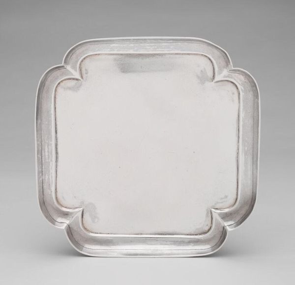 Editor: Here we have "Waiter," created by Isaac Liger sometime between 1723 and 1724. It's a petite, ornate tray made of silver. The delicate floral patterns around the edge strike me as particularly charming. What story does this object tell you? Curator: Looking at this piece through a historical lens, it speaks volumes about social class and power. This isn’t merely a serving tray; it's a declaration of wealth. How do you imagine an object like this being used in its time? Editor: Perhaps for serving something luxurious like chocolates or coffee during a formal gathering? It feels too precious for everyday use. Curator: Exactly. The Rococo style, with its emphasis on elaborate ornamentation and asymmetry, served to visually reinforce the elite status of its owners. Objects like this, commissioned and displayed, solidified the cultural and social hierarchy of the time. What’s the relationship between art and power as displayed by this tray? Editor: It's fascinating how an everyday object like this can be used to subtly signal someone's position in society, almost like a badge of honor. I hadn't considered the overt display of power like that. Curator: The Art Institute acquired it – what power dynamic does the choice of who possesses it now, as a valued object, represent? Think about its journey from a private collection in the 18th century to a public museum today. Editor: Right! It changes the audience and shifts the control of meaning – it becomes an educational tool that symbolizes an era and power dynamic. This silver tray suddenly feels much more loaded. Thanks, that gives me something new to think about.