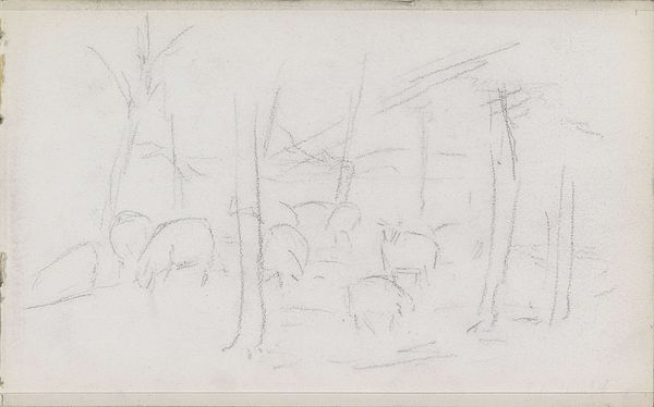Anton Mauve sketched this landscape with trees using graphite on paper; it is now held in the Rijksmuseum collection. The composition presents a horizon line that divides the paper into two distinct sections. The artist has rendered trees in the foreground using a series of vertical and curved lines. These lines, varying in thickness and intensity, delineate the trunks and suggest the volume of the foliage. The sketches give an idea of three-dimensionality, with trees overlapping. The marks capture the essence of the landscape. In structuralist terms, Mauve's sketch operates as a sign, with the marks on paper acting as signifiers that point to the signified: the concept of "landscape." Yet, the sketch is far from a mimetic representation; it highlights the artist’s interpretation. The quick strokes and unfinished appearance invite viewers to complete the image in their minds, engaging them in the creation of meaning. This sketch invites reflection on the relationships between perception, representation, and reality.