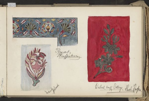 This page of studies, ‘Plafondversiering, Arabisch lijnornament en een arabesk’, was made by Johanna van de Kamer, probably in the late 19th or early 20th century. It looks like she was working out some ideas, maybe for a design project, using watercolour. The way she's handled the medium here is interesting – it's quite controlled, the paint thinly applied and the colours muted, apart from the shock of bright red in the floral border. It's like she's trying to understand the structure of these patterns, rather than just copying them. Look at how the lines in the 'Arabisch lijnornament' overlap. It's not just about the finished design, but about how the design is constructed. It reminds me a bit of Hilma af Klint’s notebooks, where she was working through ideas, and breaking things down into component parts. It’s this sense of art as an ongoing conversation, and not just a fixed statement, that really appeals to me. There are no definitive meanings here.