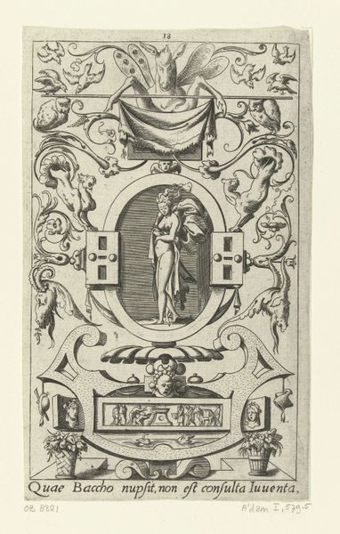 Etienne Delaune created "Muziek," a print of minute dimensions, sometime in the 16th century. Immediately, the symmetrical organization strikes us, with its precise arrangement of elements around a central figure playing a lute. Delaune's composition is a study in contrasts. On the one hand, it is a celebration of classical harmony with its balanced arrangement of musical motifs and architectural framework. Yet, the presence of grotesque figures—bats, winged demons—introduces an element of the uncanny. This combination destabilizes a straightforward interpretation, suggesting a deeper exploration of music’s power to evoke both order and chaos. Consider the lines; swirling ornamentation against the figure’s static pose. This interplay functions beyond mere decoration; it embodies the complex relationship between Apollonian order and Dionysian frenzy, a visual metaphor for the nuanced experience of music itself.