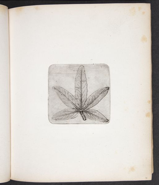 Curator: Welcome. Today, we are exploring "Aftryk af blade", which translates to "Impression of Leaves", created around 1833 by Peter Larsen Kyhl. It is a drawing and print on paper housed right here at the SMK. What are your initial thoughts on this subtle artwork? Editor: It has a hushed, almost ghostly quality. The pale tones and delicate rendering evoke a sense of stillness, like a moment suspended in time. They also appear very purposefully laid on that page together, as if asking for something. Curator: Kyhl meticulously captures the distinct venation of each leaf. The technique almost feels like a devotional act, giving reverence to the specific form and inherent structure of the plants. In that time there was an uptick of realism in Danish Golden Age art, which these realistic leaves do symbolize. Editor: Exactly. And the stark realism juxtaposed against what seems like a near-religious act gets me wondering: Was he merely observing nature, or making a commentary? The lack of color almost deprives these forms of their vitality, underscoring themes of ephemerality, and even environmental concerns when viewed with a contemporary eye. Curator: Fascinating, but consider that the arrangement of leaves within this small print, is quite symbolic, too. To a naturalist of that time, different species of trees possessed deeper meanings that this artist was clearly communicating through. He is reminding viewers that there's order to nature. Editor: True. While I don’t doubt his dedication to faithfully reproducing nature, and in highlighting the order, I am drawn to think about how printmaking, even then, facilitated broader access to the natural world through visual means. Its about reaching a wide viewership. The artist almost makes you consider their history of place, culture, and class. Curator: Absolutely. Kyhl’s impression isn’t just about imitation; it’s about engaging with nature, drawing conclusions, and immortalizing it through art for that historical moment. Editor: Well, that helps clarify this delicate image. Considering the themes embedded here certainly broadens the discussion and reminds us of the complex intersections that shaped artistic expression during that time period. Curator: Indeed. It makes me think about our connection to natural artifacts that help structure society even today.