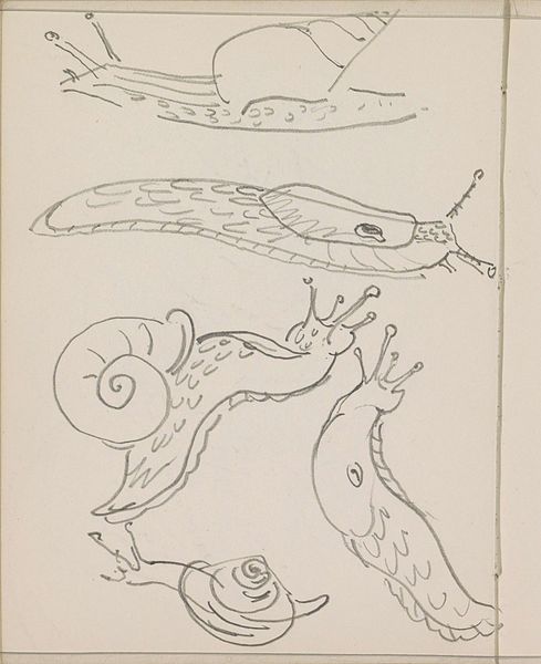 Curator: Looking at "Hagedis," created by Julie de Graag sometime between 1887 and 1924, the first thing that strikes me is the stark simplicity. It’s just a pencil drawing of a lizard. Editor: It's rather unsettling, isn't it? The pale, almost ghostly quality of the pencil on paper gives it a feeling of scientific detachment, like an illustration from a forgotten textbook. I wonder about the cultural significance of lizards during that time. Were they simply subjects for observation, or did they hold symbolic weight? Curator: I think both can be true at once. Throughout history, lizards have been symbols of regeneration, adaptability, even good fortune in some cultures, contrasting other associations like evil or fear. Considering De Graag’s interest in natural forms, the choice of a lizard suggests something about transformation, shedding old skin for new. Editor: Fascinating. From a social history point of view, one wonders where de Graag might have encountered the lizard, and how accessible such creatures were to artists, especially women artists at that time. Could she have observed it in a terrarium, or perhaps in a more natural setting? And how would gender norms shape her perception and depiction? Curator: Good points! The Rijksmuseum tells us this is a drawing. What's amazing is the starkness and detailed realism. There are incredibly subtle pencil strokes. You can really feel the texture of the lizard’s skin. Editor: I'd add, despite the realism, there's an almost abstracted quality too. The background is pure negative space, focusing our attention entirely on the creature. Curator: And that position... ventral view is not what one expects from such art! Perhaps that vantage gives it more weight, makes the viewer reconsider their perspective when looking at life. Editor: In that respect, the artwork challenges conventional notions of beauty and deserves its place in the collection here at the Rijksmuseum. The "Hagedis" serves as a subtle reminder of the diverse narratives interwoven within the visual arts. Curator: Indeed. It invites a closer look at the relationship between art, science, and cultural perceptions, especially now, years later.