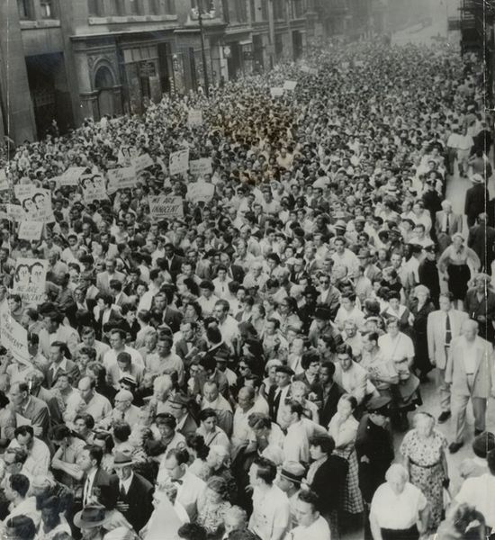 This photograph by Garry Winogrand captures a moment thick with symbolism: a New York "hard hat rally". The American flag, a potent emblem, is waved en masse, representing patriotism but also, perhaps, a more complex assertion of national identity. Consider the raised fist, seen throughout history from ancient Rome to revolutionary France. Here, it embodies defiance and solidarity. Yet, the accompanying signs like "Impeach the Red Mayor", shift its meaning. This isn't a universal call for liberation, but a specific, politically charged expression. The hard hats themselves become symbols, representing the working class, but also a particular stance within the social upheavals of the time. We see the American flag, distorted in the hands of the crowd, its symbolism ever-shifting. The collective memory is invoked and reshaped, and it leaves us to consider how symbols, once clear, can be molded to serve the passions of the present.