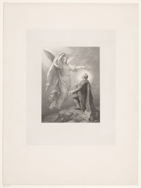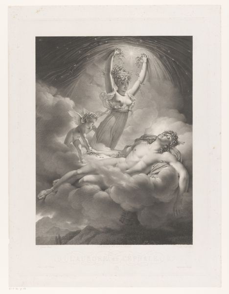 Adrien Didier created this print, "Wisdom and Truth Descending to Earth," to capture allegorical figures embodying profound concepts. Here, we see Wisdom, represented as a partially nude woman, gesturing upwards, while Truth, adorned with a helmet, directs our gaze downward. These figures encapsulate the Enlightenment ideal of reason and knowledge dispelling ignorance, a theme echoing in various epochs. The motif of unveiling truth can be traced back to ancient depictions of veiled goddesses, with the removal of the veil symbolizing revelation and insight. Consider, for instance, how depictions of Athena, goddess of wisdom, evolved from a symbol of war to one of strategic intelligence. This image touches on a deeply rooted psychological need to seek understanding. This representation highlights the cyclical resurgence of symbols, evolving and adapting to new contexts while retaining their foundational power.