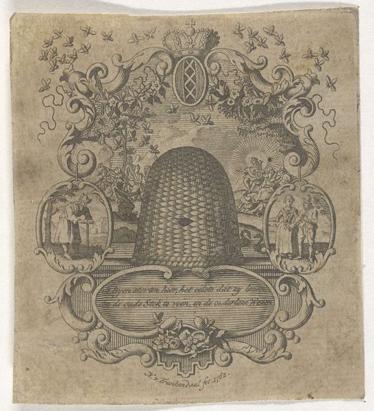 Curator: Take a moment with this “Peervormig ornament met grotesken,” or "Pear-Shaped Ornament with Grotesques," a graphic artwork originating before 1587. The artist we know as Abraham de Bruyn captured these forms with engraving on toned paper, now residing here at the Rijksmuseum. What's your first impression? Editor: Dark and whimsical! The figures look like they're emerging from a fever dream. There’s something slightly unsettling, but also quite humorous about their contorted shapes. The whole pear shape pulses with contained energy, doesn’t it? Curator: Absolutely. Bruyn masterfully used the grotesque—those hybrid human-animal figures so popular during the Renaissance—to explore themes of transformation and the fluidity of form. Think about the cultural context! This was a time of huge exploration into natural science, human anatomy… but also, wild imagination! Editor: Exactly, a collision of reason and the irrational! The central figure, almost like a miniature Hercules, seems poised between worlds. Notice how the snakes entwine the scene - they almost become the shackles on humanity itself? Are we trapped in our animalistic impulses or transcending them? Curator: I love that interpretation. Bruyn was obviously working within a well-established tradition of ornamental design but I think he pushed the boundaries a bit, injecting a darker psychological current, with more overtly pagan symbols, where others might have focused purely on elegant embellishment. Editor: It’s a potent reminder of the enduring power of symbols. Even when they’re presented in miniature, like this piece, they can speak volumes about the anxieties and aspirations of a culture. Looking at it makes you wonder, doesn’t it, what symbols we create now, that centuries later, might spark as much debate? Curator: Right?! It's as if Bruyn’s grotesque figures are whispering secrets across time! Each snakelike tendril hints at narratives that escape clear explanation, but touch us on a subconscious level. This image really exemplifies the idea that art transcends epochs.