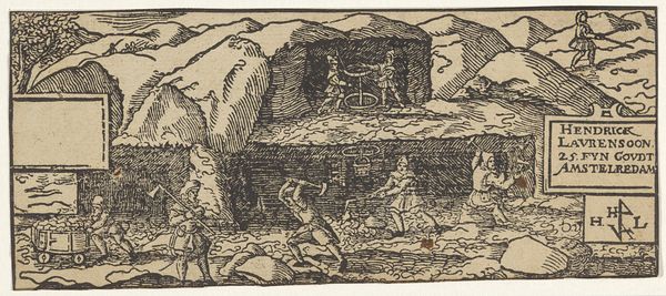 Curator: Looking at Hendrick Goltzius's "Landscape with a Waterfall, from Four Small Landscapes," dating perhaps from 1597 to 1620, I'm struck by its sheer physicality. It's an intaglio print, probably etching and/or engraving, rendered on paper, isn't it marvelous? Editor: It has such an overwhelming and somewhat wild feel for what looks to be a smaller print. The chaotic texture in the foreground feels quite raw and untouched despite being rendered. It also brings me a rustic, industrious feel, and it sits next to an image of natural beauty. What do you think is happening here? Curator: Well, it shows both the sublimity of nature and also suggests an industrious countryside that feeds directly into burgeoning urban markets of the Northern Renaissance. You know, these landscapes gained popularity among urban audiences removed from rural work. This "wilderness" becomes a desirable commodity. Editor: Right, I suppose these landscapes performed a specific function for those viewers. I am looking at the woodcutting’s material reality, that it's a reproducible image; I also can’t help but wonder who was accessing this, given the labor invested and the social status that accompanies artistic patronage and consumption during that period. Was the work involved itself celebrated at all? Curator: That's an important point, considering how the proliferation of prints also shaped artistic reputation. An artist’s success depended not just on artistic skill but on access to networks, workshops, and dealers who disseminated these prints across Europe. This landscape print existed within networks of exchange between artist, artisan, patron, and consumer. Editor: You can certainly see that interplay in the fine lines rendered for that rustic, almost idyllic house situated nearby to the impressive and cascading waterfall. It’s interesting how the "high" art landscape aesthetic can co-exist with these images of more commonplace subject matter—how these processes blur categories and histories. Curator: Yes, Goltzius masterfully captures that tension! Editor: What a powerful way to experience the changing world of the late 16th century, even through a small piece of paper. I’m now seeing more profoundly the labor involved in bringing us these prints! Curator: Indeed, thinking through these complex issues of production really reframes our viewing experience of even the humblest-seeming images.