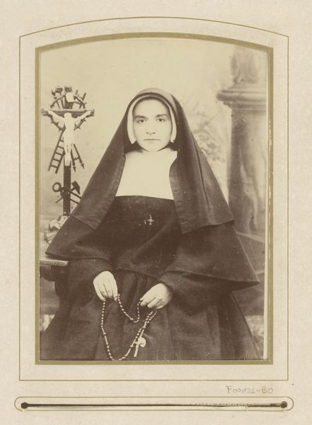 This is a photograph of a seated nun with a headdress and rosary, created by P. Weijnen & Fils. The rosary she holds is more than a string of beads; it is a potent symbol of faith, reminiscent of ancient prayer beads used in various cultures. The beads offer a tactile connection to the divine. This tactile connection evokes a profound sense of spiritual grounding, echoing the perpetual cycle of prayers. Consider the cross. Its form has permeated through time, from early Christian symbols in catacombs to its presence in modern jewelry. It has appeared in various forms, from a symbol of martyrdom and suffering to one of hope and redemption. In the collective unconscious, this symbol invokes not only religious devotion but also the complex interplay between suffering and salvation. This simple yet powerful image captures the essence of devotion, inviting us to reflect on the enduring symbols that shape our spiritual understanding.