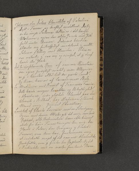 Johan Thomas Lundbye created this page in a travel journal during his travels, using ink on paper. The recurring motif of ancient Roman and Greek culture, mentioned in his notes, holds significant cultural weight. References to figures like Achilles evoke the heroic narratives of Homer, connecting Lundbye’s immediate experiences with the classical past. This reaching back to antiquity is not merely aesthetic; it is a psychological anchoring. The allusion to Triptolemus, associated with agriculture and civilization, further enriches the symbolic landscape, highlighting themes of cultivation and progress. We see this pattern of invoking classical figures reappear throughout art history. The Renaissance rediscovered and reinterpreted these myths, using them to convey ideals of humanism. These figures evolved into symbols of cultural memory, each new interpretation layered with the values and anxieties of its time. Lundbye, through his notes, engages with this ongoing dialogue, revealing how deeply ingrained these ancient narratives remain in our collective consciousness.
