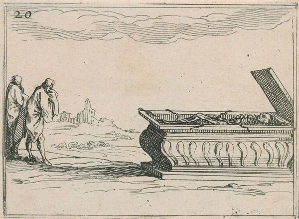 Curator: This engraving, "Their Manner of Fishing in Virginia," comes to us from Theodor de Bry, who was active in the late 16th century. Editor: There's an immediate sense of abundance here, almost an Edenic vision of the New World. The water teems with life. Curator: De Bry never actually visited Virginia. His images, like this one, were based on watercolors by John White, and were meant to illustrate Thomas Hariot's accounts of the Roanoke colony. Editor: That explains the stylized figures, but it still speaks to a powerful desire to depict a land of plenty, right? The act of fishing becomes almost ritualistic. Notice the contrast between the figures in the boat and those standing directly in the water. Curator: Yes, and in considering this image's place in history, it's important to think about how it functions as a form of colonial propaganda, shaping European perceptions, and, perhaps, obscuring the realities of indigenous life. Editor: I agree. It’s a potent reminder of how images can both reflect and construct narratives about new worlds and their inhabitants.