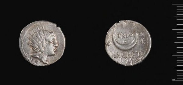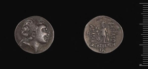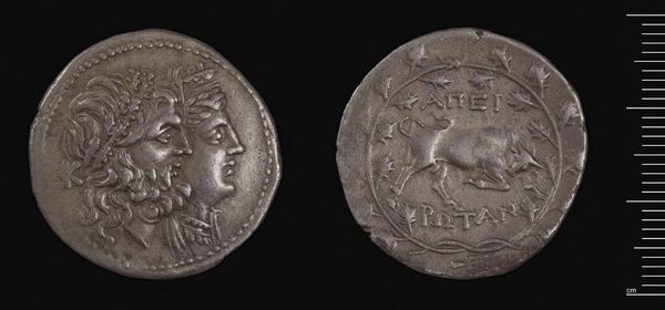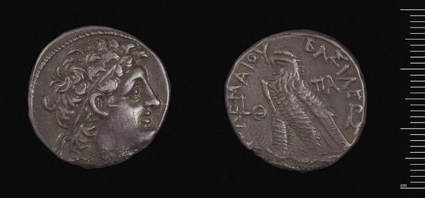 Curator: This is a Tetradrachm of Ptolemy IV, made of metal. It currently resides in the Harvard Art Museums. Editor: It's incredible, isn't it? The two faces, one behind the other, almost ghostly in their presentation. The owl on the reverse is a sharp contrast. Curator: Indeed. Coins such as this, minted under Ptolemy IV, served as both currency and propaganda. They were circulated widely, embedding the ruler's image and authority into the fabric of daily life. Editor: I'm struck by how it reflects the power dynamics of the Ptolemaic dynasty. The visual representation of the ruler enforces his legitimacy and perhaps even attempts to control the narrative surrounding his reign. Curator: Exactly. The imagery and symbolism, were carefully chosen to convey power and divinity, very important in that society. Editor: It's fascinating to consider how this object, designed for economic exchange, also functioned as a tool for social and political control. Curator: A reminder that even the smallest artifacts can reveal profound insights into the past. Editor: Definitely. The intersection of art, power, and identity is always ripe for exploration.