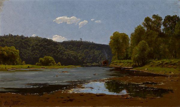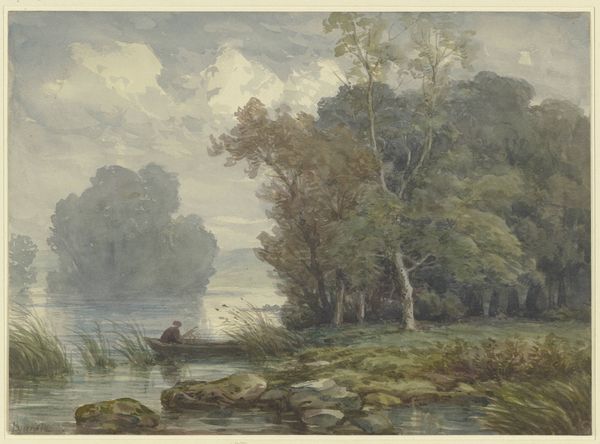 Julian Ashton painted "Boatman on the Hawkesbury River, at Cole and Candle Creek, near Akuna Bay" in watercolor. The work depicts a lone boatman on a tranquil river, surrounded by the Australian landscape. Ashton arrived in Australia in 1878, becoming a key figure in promoting plein air painting and advocating for a distinctly Australian art. This work reflects that ethos, turning away from European models towards an engagement with the local landscape. The painting reveals the complex relationship between settlement and the environment. The Hawkesbury River, while seemingly untouched, was also a site of colonial expansion, resource extraction, and the displacement of Indigenous peoples. The solitary boatman could be interpreted as a symbol of this ongoing negotiation between humans and nature. To understand the painting better, it would be useful to investigate the history of settlement along the Hawkesbury River and the social and environmental impact of colonial activities in the region. By examining historical documents, maps, and other visual materials, we can gain a deeper understanding of the cultural and historical context of the artwork.