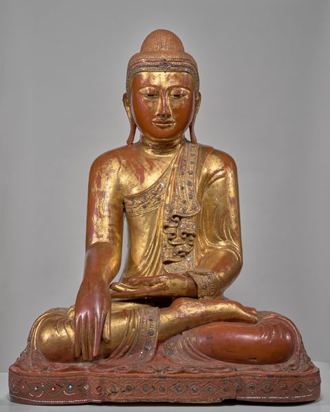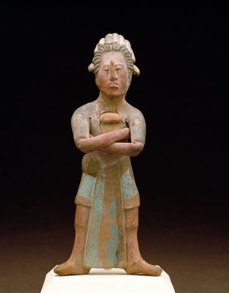 Curator: Oh, my goodness, this wooden figure! The face has such serenity, like catching a glimpse of pure, untroubled sleep. I love how the carving is simple but full of subtle curves. It just breathes calmness. Editor: What you’re describing so poetically is “Attendant to a King of Hell,” a wooden sculpture likely crafted in the 19th century. The piece is currently housed here at the Minneapolis Institute of Art. It gives us some insight into popular religious beliefs. Curator: "Attendant to a King of Hell"—the title completely shifts how I see it! I imagined a tranquil spirit, but it sounds like there is potentially a darker undertone in the sculpture’s purpose, I suppose, as a function of power. The formality of the costume… that stiff collar... it takes on a more ambiguous feeling now. I’m definitely re-evaluating! Editor: The piece blends artistry with cultural history, you see. The figure's garments indicate status within the envisioned hierarchy of the underworld. Pieces such as this tell us not only about artistic practice, but about social beliefs during that era. And I believe that it’s meant to offer comfort to the ordinary citizen; it mediates on something quite fearful, which would offer psychological relief. Curator: So it becomes less about dread and more about the power to mediate difficult things... interesting! The folds of the robes, though stylized, show such a gentle flow. The artist made this very human. The faded paint enhances its enigmatic character. Is there a story here of reverence changed or tested through time? I'm filled with such thoughts right now. Editor: These kinds of artifacts underscore that art objects always exist within cultural narratives and frameworks. Examining an artwork allows for examination into how social fears can be visualized, reinterpreted and addressed within communities, across time, isn't it amazing? Curator: Truly amazing! And also so interesting, that this piece originally spoke to fear, and yet to me first evoked a quiet gentleness. Editor: Ultimately it just comes to show how multifaceted this artwork truly is.