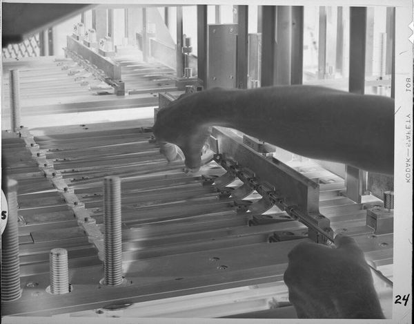 Editor: This photograph, "Untitled (close-up view of machinery)" by Lucian and Mary Brown, shows, well, a close-up view of machinery! It feels very cold and industrial to me. What does it bring to mind for you? Curator: It evokes the often-unseen mechanisms that underpin our society. Consider the labor implicit in these forms. How do you think gender and race factor into who operates, designs, and benefits from this technology? Editor: That’s a powerful point, I hadn’t thought about it that way. So, this isn't just about the machine itself, but about the social structures it represents? Curator: Precisely. It prompts us to question the power dynamics embedded within seemingly neutral technologies. What is gained and lost through industrialization? Editor: It gives me a lot to think about regarding technology and society. Thanks! Curator: My pleasure, keep interrogating the image!