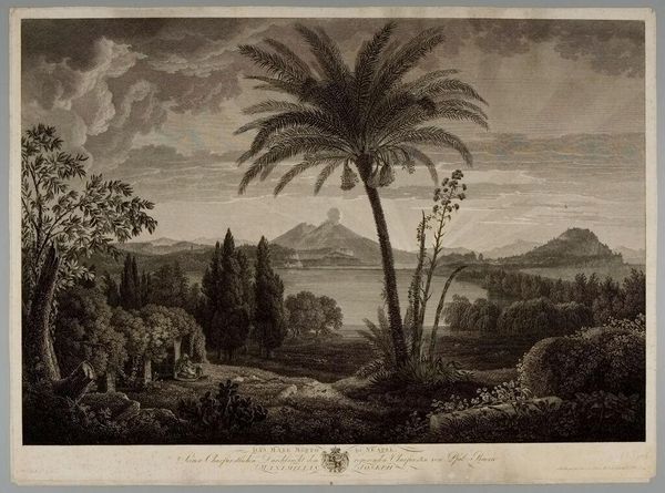Friedrich Wilhelm Gmelin's "View of a Lake Near Naples" offers us a landscape dominated by the serene lake, but it is the towering palm that truly captures our attention. This tree, not native to Italy, speaks volumes about the romanticized vision of the South, a symbol of exotic allure and classical nostalgia. The palm, reaching towards the heavens, echoes ancient symbols of victory and eternal life. Think of its presence in Roman triumphs, or its association with the sun god Ra in Egyptian iconography. Over time, this symbol has journeyed through cultures, each imbuing it with new layers of meaning. Here, it suggests a longing for a bygone era, a yearning for a simpler, more idyllic existence. The distant volcano looms, a subtle reminder of nature’s power and the ever-present threat beneath the surface of beauty, engaging our subconscious with the promise of both creation and destruction. This landscape is not just a depiction of a place, but a vessel of collective memory, inviting us to reflect on the enduring human quest for paradise.