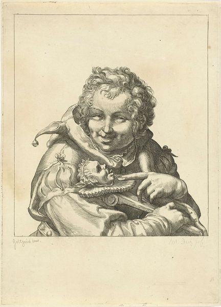 Hendrick van Beaumont created this sanguine drawing of a laughing jester, holding a staff, sometime during the 17th century. The figure of the fool had a complex position in early modern European societies. On the one hand, they were figures of ridicule, often associated with the lower classes. On the other, they had privileged access to the highest echelons of power, as advisors in royal courts. Perhaps this is one reason why the jester became such a popular character in paintings, prints, and drawings, particularly in the Netherlands and elsewhere in Northern Europe. The jester could get away with mocking social conventions, even critiquing the rich and powerful. It’s worth asking, what kind of social critique could be voiced through this figure? The image’s meaning depends on its context. To understand that context, a good art historian turns to sources such as contemporary literature, theater, and social histories.