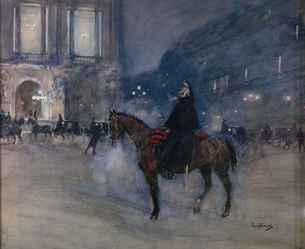 Editor: This is "Back from the Races" by Jack Butler Yeats. The oil paint is applied with such energy! The speed of the horse practically leaps off the canvas. What's your take on this piece? Curator: Yeats often depicted Irish life and culture. The racing scene was a public spectacle, and here we see it mediated through the lens of class and leisure. Consider the impressionistic style – how does that aesthetic choice shape our understanding of the event itself? Editor: It definitely feels more fleeting and less formal. Curator: Exactly. It’s not just about the race but about the public experience and its representation, wouldn't you agree? Editor: I see what you mean. It's a snapshot of a moment, not a posed portrait of victory. Curator: Precisely. It makes you think about how social events become ingrained in our collective memory.