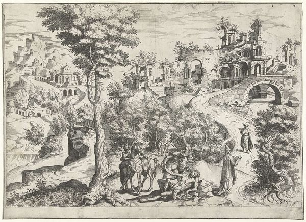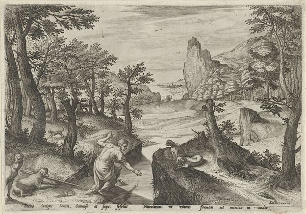Johann Sadeler the First created this engraving, "Riverscape with the Emblem of Laziness," around 1600. It presents an allegory against idleness, a theme that resonates with the economic shifts happening in the Netherlands at the time. Sadeler was part of a booming print industry that catered to an increasingly literate and mercantile society. Here, we see classical figures in a detailed landscape, a style popular among the educated elite. The contrast between the active figures and the lounging ones served as a moral lesson. It highlights the Protestant work ethic gaining traction in the Dutch Republic. This emblem speaks to the cultural anxieties of a society transitioning from agrarian to commercial values. To fully grasp this, historians consult emblem books, economic treatises, and social commentaries of the period. Art like this is not just aesthetic, it's a window into the values and tensions of its time.