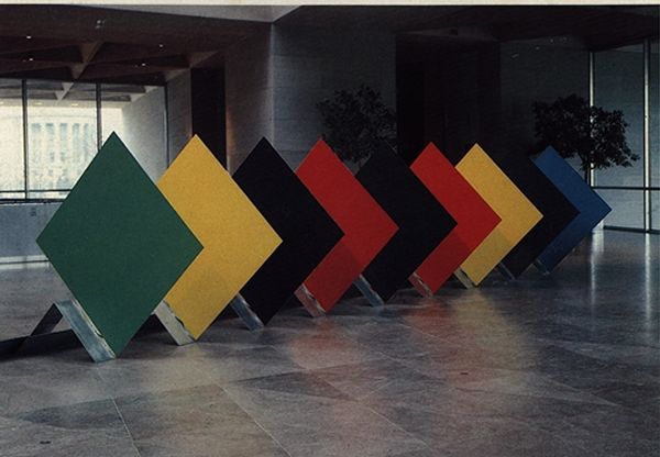 Here, Daniel Buren gives us ‘Double Rhythm’ with paint and stripes and light all doing their thing. The way Buren uses color here is super interesting, right? Those bold rectangles, green, purple, red, like pure color having a conversation with the architecture. Look how he uses those vertical stripes to play with the existing lines of the building. It’s not just about filling a space; it's about making the space itself do something new. And those colors. They sit so flat, but it’s not a dead flatness; they’re alive with the potential to make you feel something, especially in relationship to the cool and warm lights from above. I love that this work is site-specific, made for a particular place, like it was always meant to be here, but also challenges how we see that very place. It makes me think of what Mondrian was doing with color and grids, taking something rigid and making it sing. Art’s just a big, ongoing conversation.