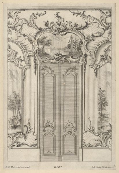 This is Emanuel Eichel's "Schouw met kandelaars," a design for a mantelpiece with candelabras. Look closely at the elaborate, swirling patterns dominating this design. These are examples of rocaille, a motif derived from the French word "rocaille" describing stones, shells, and water features used to decorate garden grottoes. This ornamentation is no mere surface decoration. The asymmetrical, organic forms that you see capture a deeper shift away from the symmetrical, ordered world of the Renaissance. Consider how the rocaille resembles the uncontrollable forces of nature. They elicit the sublime, a concept we can trace back to Longinus. The fire in the hearth, framed by these motifs, becomes a focal point for contemplating the mysteries of life and the power of nature. Observe how the candelabras flank the mirror above the mantelpiece. Light and reflection play on our perception, and the collective memory of these symbols evokes an emotional response that transcends mere aesthetics, stirring something profound within us. These patterns become more than decorative flourishes; they embody a cultural memory, and a fascination with the sublime, continually resurfacing across different epochs.