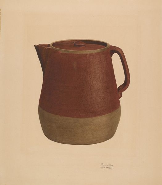 Nicholas Amantea created this watercolor and graphite work on paper of a utilitarian object, titled 'Crock.' Amantea was active in the 20th century, and his identity as an artist, particularly one focused on rendering everyday items, invites us to consider the value we place on the mundane. This depiction of a simple crock transcends its function. Historically, such vessels were integral to food preservation and storage, deeply entwined with domestic labor, traditionally a woman’s domain. By focusing on this object, Amantea subtly acknowledges the often-unseen labor that sustains households and communities. The stoneware crock, adorned with a floral design, sits squarely in the center, grounding the composition. The unassuming nature of the crock allows for an appreciation of the skill involved in capturing its essence on paper. In our contemporary moment, where mass-produced, disposable items abound, Amantea encourages us to pause and reflect on the beauty and utility of objects made with care.