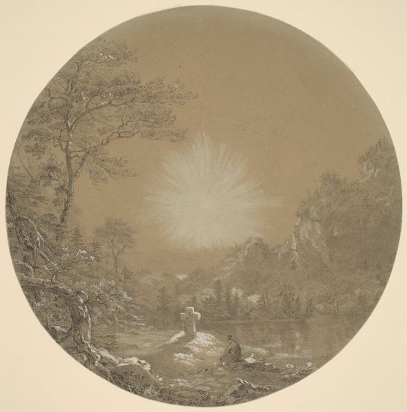 William Trost Richards created this delicate pencil drawing, Study of Ground Foliage, as part of his Cropsey Album. Encased within a circular format, the composition focuses on the intricate details of plant life, rendered in subtle gradations of gray. The textured application of pencil strokes captures the varied surfaces of leaves and stems, inviting us to appreciate the natural world through close observation. Richards’ emphasis on detail prompts a deeper consideration of how we perceive nature. The circular frame isolates this fragment of wilderness, transforming it into a subject worthy of focused attention. This compositional choice challenges traditional landscape painting, which often prioritizes vast, panoramic views. By drawing our attention to what might be easily overlooked, Richards blurs the boundaries between the monumental and the mundane. The round format echoes a scientific specimen viewed through a lens, emphasizing the study of the natural world. This intertwining of art and science underscores the idea that our understanding of the world is shaped by how we choose to frame and examine it.