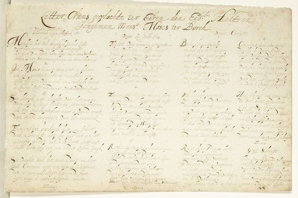 This is "Gedicht ter nagedachtenis aan Moses ter Borch," a memorial poem for Moses ter Borch, created by Gesina ter Borch. Gesina was a Dutch Golden Age watercolorist and calligrapher, and this piece, now in the Rijksmuseum, is a poignant example of her artistic expression. As a woman artist in the 17th century, Gesina occupied a unique position in Dutch society. The poem commemorates her brother Moses, reflecting the deep familial bonds and personal losses that shaped her life. The delicate calligraphy and heartfelt verse provide insight into the emotional landscape of a woman navigating life and loss in a patriarchal society. The act of creating such a memorial was itself a powerful statement. It allowed Gesina to inscribe her personal narrative and emotional experiences into the historical record. In doing so she defied the conventional representation of women during this period. The poem then becomes more than just a memorial; it is a testament to the resilience and creative expression of a woman artist carving out her own space.