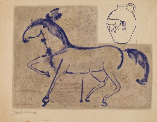 Editor: Here we have an anonymous drawing, simply titled "Drawing of a Pet Antelope." Its small scale and delicate lines give it a very intimate feeling. How do you interpret the composition of this piece? Curator: Observe the interplay between representation and abstraction. The antelope itself is rendered with a delicate realism, while the surrounding scribbles disrupt any clear sense of space. The artist plays with line and form to challenge our perception. Editor: So, the contrast between the antelope and the abstract lines creates tension? Curator: Precisely. It invites us to consider the nature of representation itself and question how we construct meaning from visual elements. Editor: I see what you mean. I will never look at simple drawings the same way.
