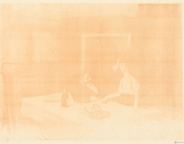 Jirí Balcar made this lithograph ‘Afternoon Repast’ at an undetermined date using a single muted sepia tone to build a scene of unsettling ambiguity. The figures are rendered without facial features, and the composition is built up with a stippled texture that feels both dense and fragile, a beautiful, quiet mess. The monochromatic palette emphasizes the material qualities of the printmaking process. Up close, you can see the variations in tone and texture, and the way Balcar coaxes depth and shadow from a single colour. The stippled effect I mentioned makes the figures appear almost spectral, like ghosts in a machine. Check out the way the lines of the table almost seem to dissolve into the background, leaving just the objects floating in space. It’s these little moments of uncertainty that give the print its melancholic mood, an atmosphere of introspection and longing. There's something about the faceless figures in Balcar’s work that reminds me of the psychological unease you find in the paintings of Francis Bacon, an emotional weight. Art, after all, isn’t about answers; it’s about the questions it provokes.