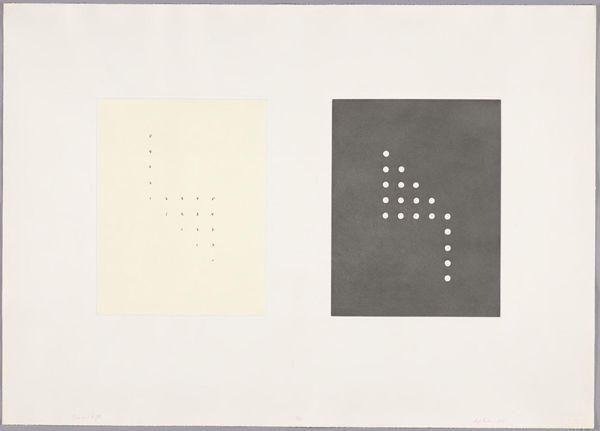 Curator: Welcome. We’re standing before Josef Maria Eder’s 1896 print, “Table of the Permeability of Various Substances to Roentgen Rays,” held here at the Art Institute of Chicago. It's an early exploration using X-ray photography. Editor: My immediate impression is of a strange, unsettling beauty. The stark contrast and grayscale palette, almost like a constellation of enigmatic objects suspended in darkness. It feels both scientific and strangely otherworldly. Curator: Indeed. What we see is essentially a visual index. Eder methodically documents how different materials—silver, copper, glass, wood, even flesh—interact with X-rays. Note the almost clinical arrangement, each sample a testament to empirical observation. Editor: The choice of materials is telling, isn't it? It reads like a catalogue of late 19th-century industry and everyday life. We see the rise of industrial materials like aluminum juxtaposed with organic matter, foreshadowing both the possibilities and potential anxieties of this technological shift. What are the social implications of visualizing the invisible? Curator: Absolutely. From a purely formal standpoint, I’m drawn to the subtle variations in tone and texture. The varying degrees of opacity create a compelling visual rhythm across the frame, a sophisticated composition that belies its utilitarian purpose. The geometric shapes offer an almost minimalist aesthetic. Editor: But its purpose is not divorced from its aesthetic impact, is it? Consider that Roentgen's discovery, and Eder’s image, had a profound effect on how bodies are perceived within systems of power. The X-ray exposes the fallibility of the flesh. Curator: That tension, that interplay between scientific inquiry and its implications, is precisely what makes this piece so compelling, don't you think? The beauty is in this marriage, a haunting, analytical look at our tangible and intangible worlds. Editor: It forces us to confront the complicated dance of progress and surveillance. A beautiful reminder of our vulnerabilities as well as technological hubris.