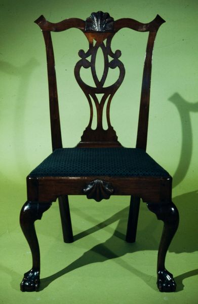 Editor: This is the "X-Frame Armchair," crafted from wood by Lewis Nockalls Cottingham between 1840 and 1845. It's currently housed here at the Art Institute of Chicago. The dark, almost brooding, wooden frame gives it a really serious feel, like something out of a period drama. How would you interpret a piece like this, thinking about its time? Curator: Given its creation in the mid-19th century, we have to understand it within the context of the Gothic Revival and Romanticism. Furniture like this wasn't just functional; it was making a statement. Look at the elaborate carvings. Does it remind you of any particular historical style? Editor: I see some medieval architectural elements in the carving, yes. So it's about referencing the past? Curator: Exactly. The X-frame itself recalls classical Roman designs, symbolizing power and authority. But Cottingham, working within a 19th-century English context, is engaging with ideas of national identity. The revival of the Gothic style was heavily promoted by figures such as Pugin, and became entwined with religious and social ideologies and England's own glorious past. Consider where this chair might have been placed. A grand hall? A library? Who do you think would have sat in it? Editor: Maybe a wealthy landowner, trying to project an image of historical importance and power? Curator: Precisely! The chair then becomes part of a carefully curated performance of social status, a way for the owner to literally and figuratively *sit* in a position of authority, consciously associating with idealized notions of English history. It's fascinating how an object seemingly so simple can be laden with so much cultural baggage. Editor: It really shifts my understanding to think about furniture as active participants in constructing a social narrative rather than passive objects of comfort. I appreciate the insight! Curator: And hopefully it inspires you to consider how these socio-political dynamics influence artistic production to this day!