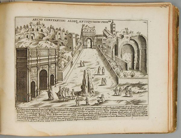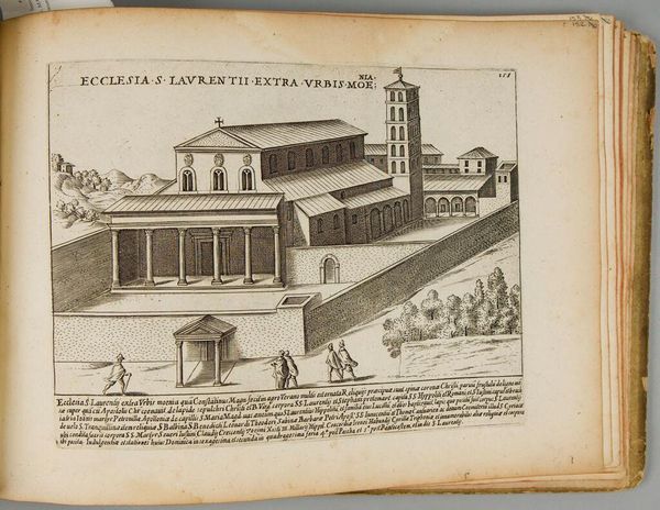 Editor: So, this is Giacomo Lauro’s print, "The Villa Publica on the Monte Giordano". The stark lines and architectural precision create a rather formal, almost severe, impression. What compositional elements strike you most in this image? Curator: The rigorous geometry, undoubtedly. Note the emphasis on orthogonal projection, devoid of atmospheric perspective. The graphic articulation underscores the architectural forms—cubes, cylinders, staircases—revealing the artist's preoccupation with ideal structure. Editor: It's like a diagram! But what does that tell us? Curator: Precisely! It invites us to analyze the artist's conceptual framework. Are we seeing an attempt to distill architectural essence, perhaps? The absence of human figures, save those atop the building, reinforces a focus on pure form. Editor: It's fascinating how much can be conveyed through such a seemingly simple depiction. I see the artist’s focus now, not on the lived-in space, but on the architectural ideals. Curator: Indeed, a valuable lesson in perceiving how form transcends mere representation.