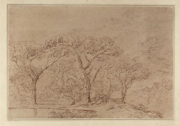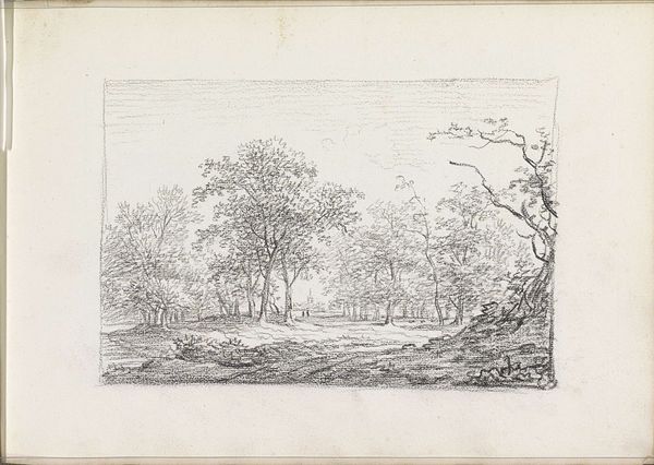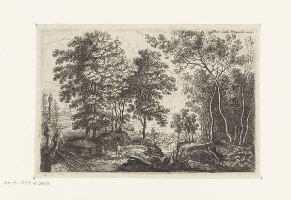 Editor: Here we have James Ensor’s "The Pool with Poplars," an etching from 1889. The density of marks creating the foliage and reflecting in the water feels almost feverish to me. How do you approach a work like this? Curator: As a materialist, I'm immediately drawn to the process. Etching, a printmaking technique, involves a high degree of labor. Think about the artist's hand, meticulously layering marks to create the image. What does that labor signify here? Is it simply representational, or does it reflect a deeper engagement with the subject? Editor: I guess I hadn't considered the amount of physical work involved in creating this image. Do you think the choice of etching itself influences how we perceive the landscape? Curator: Absolutely. Etching, unlike painting, necessitates a reproductive element. Multiple prints can be made from a single plate, disseminating the image and, therefore, the artist’s view, to a wider audience. In 1889, who would be consuming this image? And how might that influence Ensor’s choices regarding subject and style? The scale suggests an intimate, domestic consumption perhaps? Editor: So the work isn't just about the landscape itself, but about how that landscape is reproduced, distributed, and consumed. That shifts my understanding quite a bit. It connects the “high art” of landscape with the "craft" involved in the process of printmaking. Curator: Exactly. Think of the copper plate itself, the acid, the paper – these materials dictate, to a degree, the final image. They are active participants in the creation, not merely passive tools. Furthermore, how accessible were these materials to the artist, and to whom was the image intended for consumption? Editor: Thinking about the materials and the labor definitely provides a completely fresh perspective on something that, at first glance, looks like a straightforward landscape. Curator: Yes, by interrogating the "how," we start to uncover the "why" and "for whom." I find it fascinating to see how such traditional media informs themes around materiality and artistic production even at this early date.
