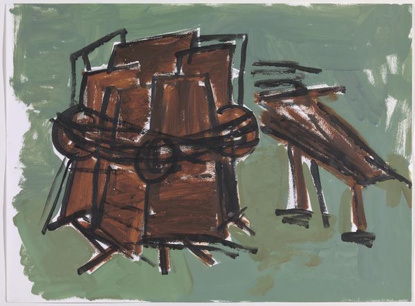 Editor: This boldly rendered "Untitled" work by Phyllida Barlow presents what looks like stacked wooden crates in vibrant blues. It's got a rough, almost clumsy energy, which I find quite appealing. What symbols or meanings do you see embedded in this piece? Curator: These blue crates, repeated and slightly off-kilter, echo the mass-produced and discarded objects that pervade our lives. Consider how Barlow often used humble materials like cardboard and plaster. This blue might represent the industrial, the utilitarian, yet its painterly application softens that edge. Does it evoke a feeling of abundance or perhaps waste? Editor: Waste, definitely waste! I hadn't considered the industrial aspect of the blue until you mentioned it. It's like she’s elevating something overlooked. Thanks for pointing that out!