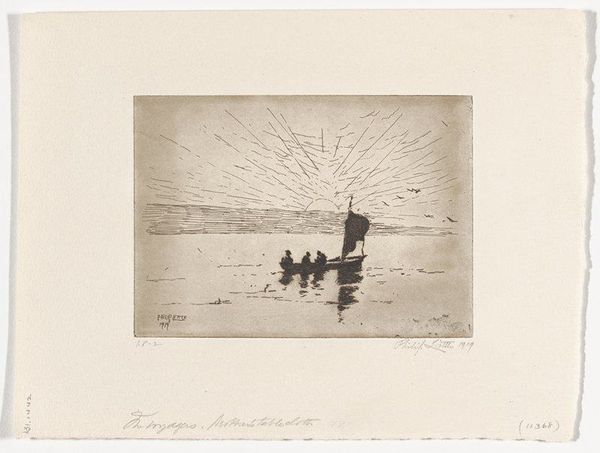 Curator: This is a small yet evocative print attributed to Pierre Roche, titled “Seascape,” housed here at the Harvard Art Museums. Editor: It feels like a memory, almost faded, rendered in monochrome. The horizontal lines create a sense of expanse, but there's also a feeling of constraint. Curator: The printmaking process itself interests me. Look closely at the plate's edge, consider the labor involved in creating this image—the physical act of etching, the materials used, the social context of printmaking as a form of dissemination. Were these seascapes accessible to the working class, or strictly for the wealthy? Editor: That focus on accessibility is critical. The sea, traditionally a space of both freedom and forced migration, gains another layer of complexity when filtered through the lens of class and availability. How does the artist's own identity inform his perspective on this subject matter? Curator: Considering all this reminds me that art and its interpretation are never neutral. Editor: Indeed, and reflecting on these material realities brings us to a more critical understanding of art’s place in our world.